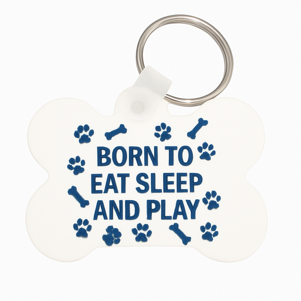 Born To Eat Sleep And Play Dog Collar Tag (Double Sided)