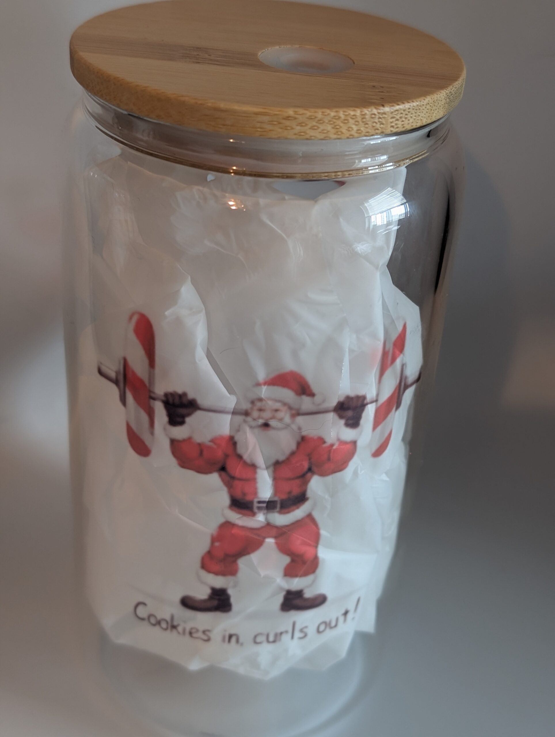 Cookies N Curls Out Santa 18oz Glass Tumbler (Double Sided) Print