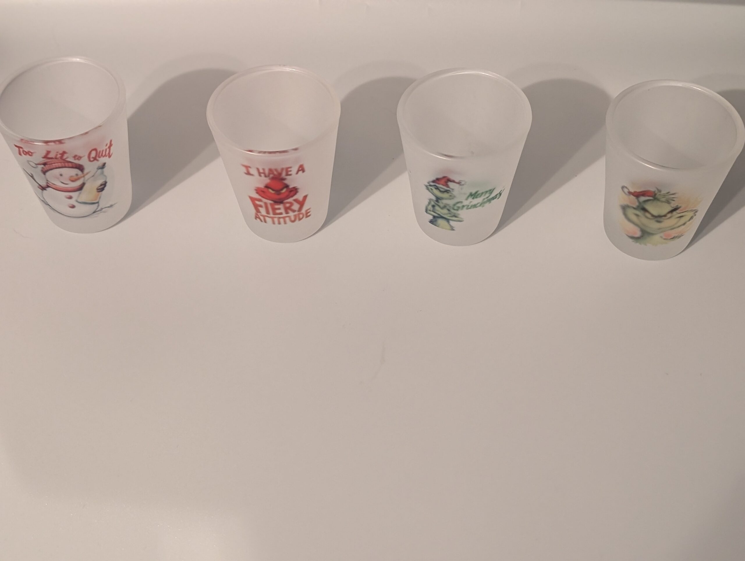 Custom Frosted Christmas Shot GlassesΒ 1.5 oz Single Sided Print