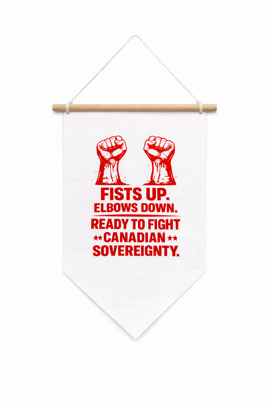 Fists Up Elbows Down Ready To Fight Canadian Sovereignty Hanging Banner Flag