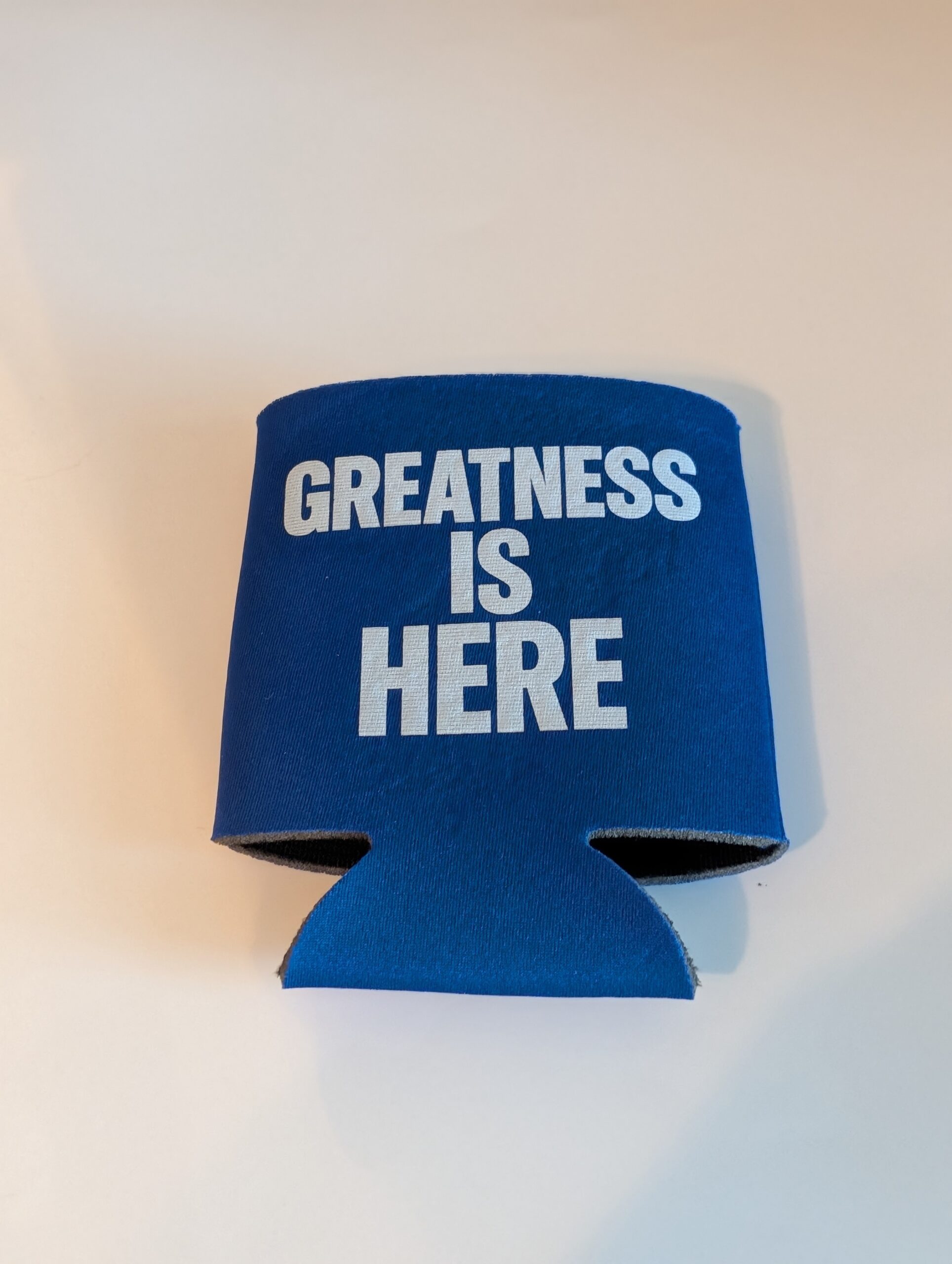 Greatness Is Here Koozie (Double Sided Print DTF)