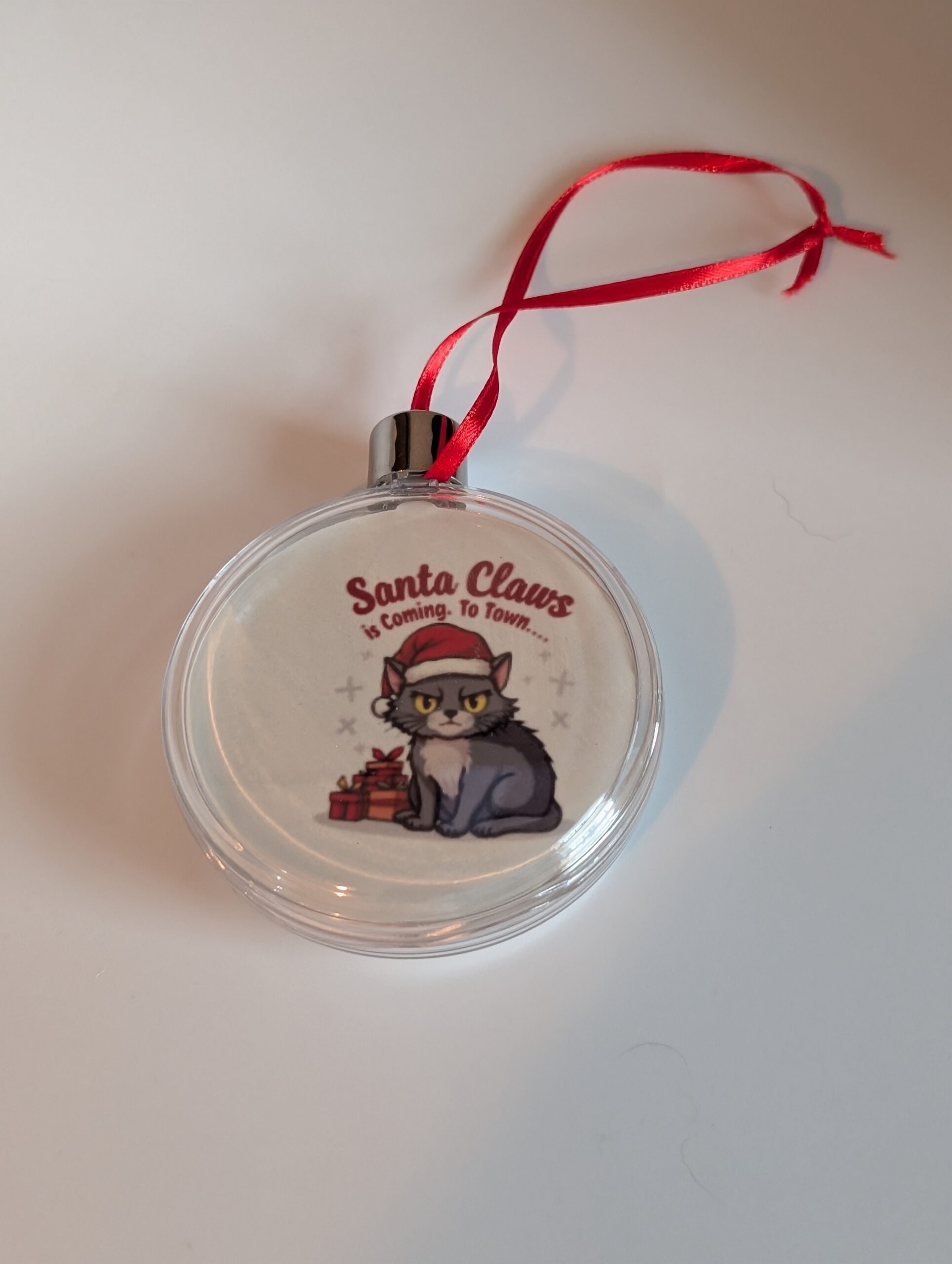 Santa Claws Is Coming To Town Round Ball Christmas Ornament